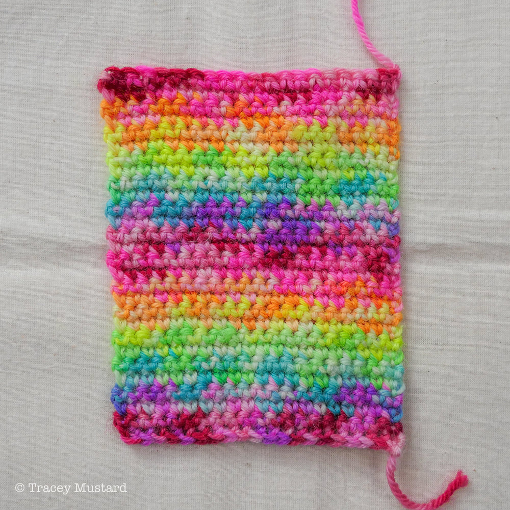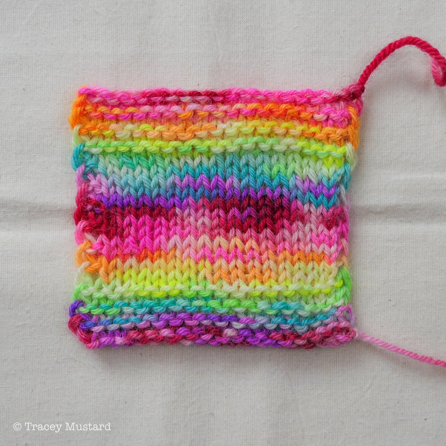 The swatches show DK used in colourway order, with no mixing required to obtain a lovely fade.