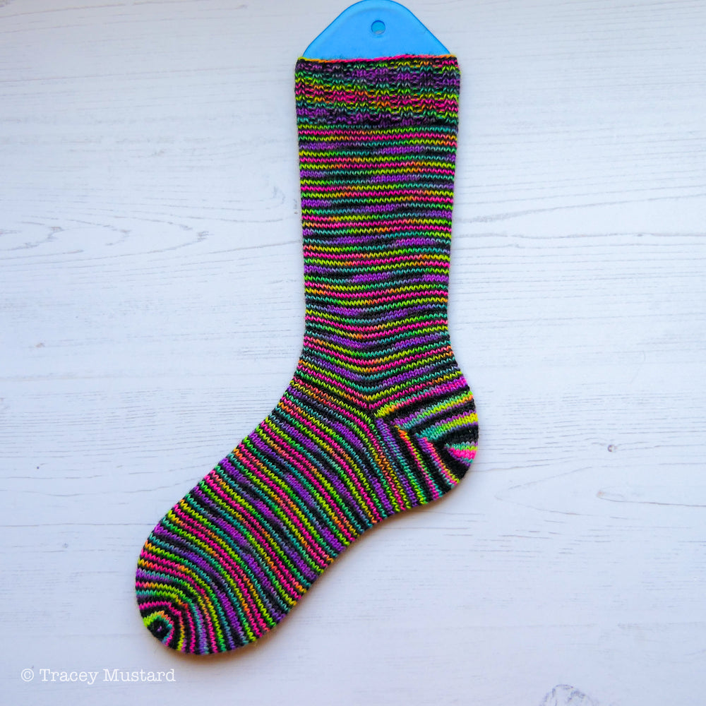 This yarn will micro-stripe in socks, and colour pool in other items (pic of my Lumina: Black Void knitted sock shown, to demonstrate).