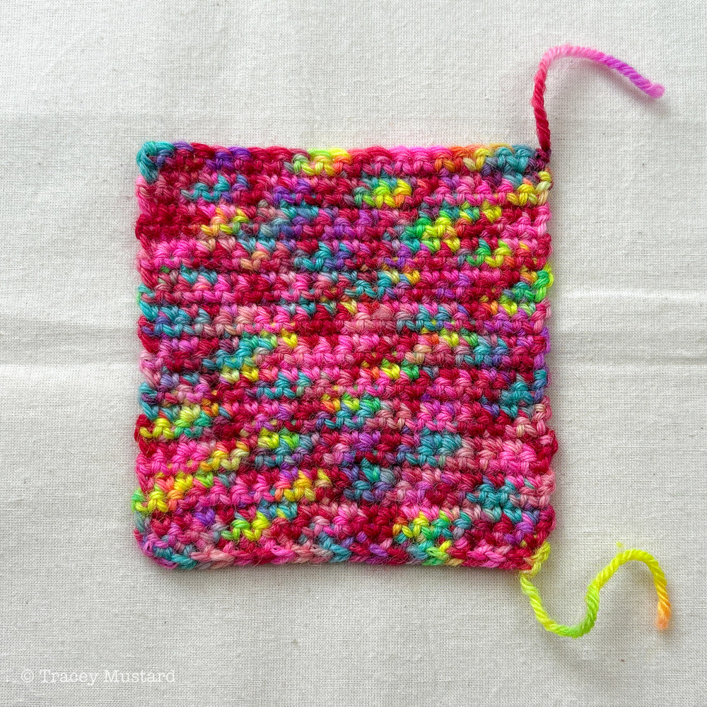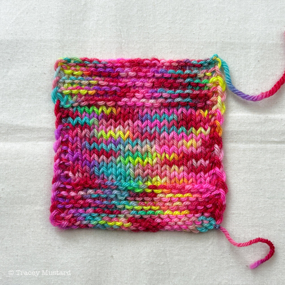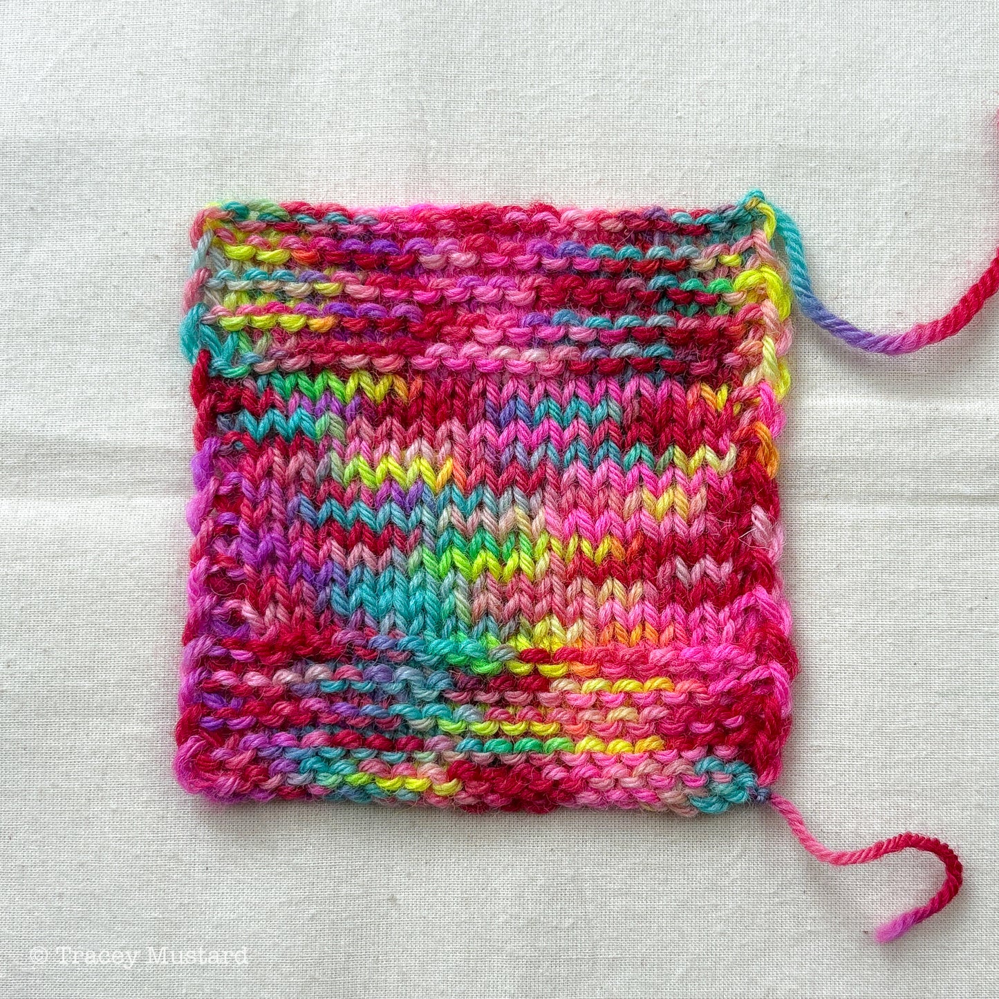 Bleeding: I don't usually encounter any bleeding when I block my yarn swatches, or any finished objects I actually complete in my yarn (using a light amount of Soak, always in cold water), but due to the nature and behaviour of some dyes, and other variables such as the hardness of your water compared to mine, you might find some bleeding may occur when soaking.